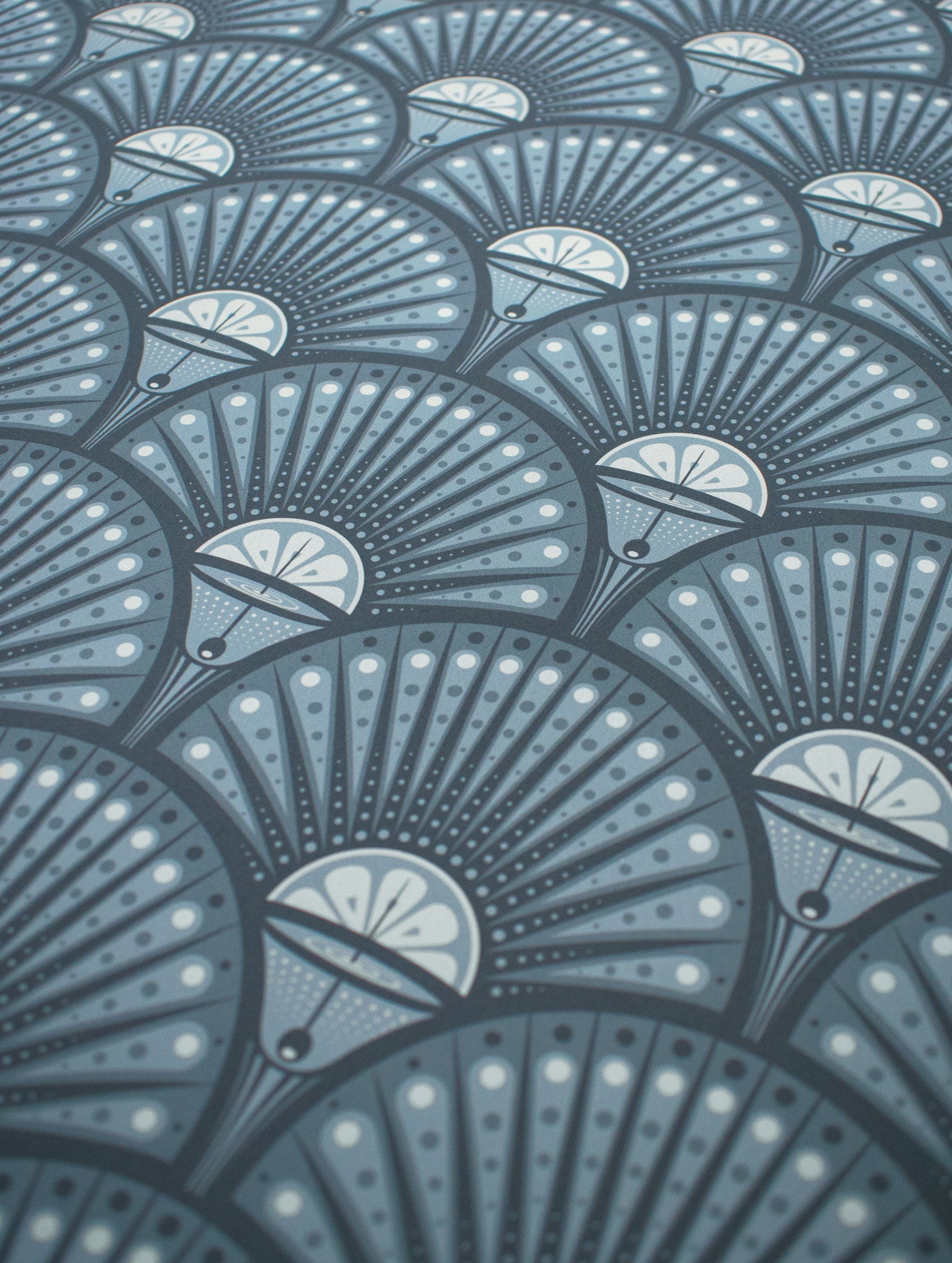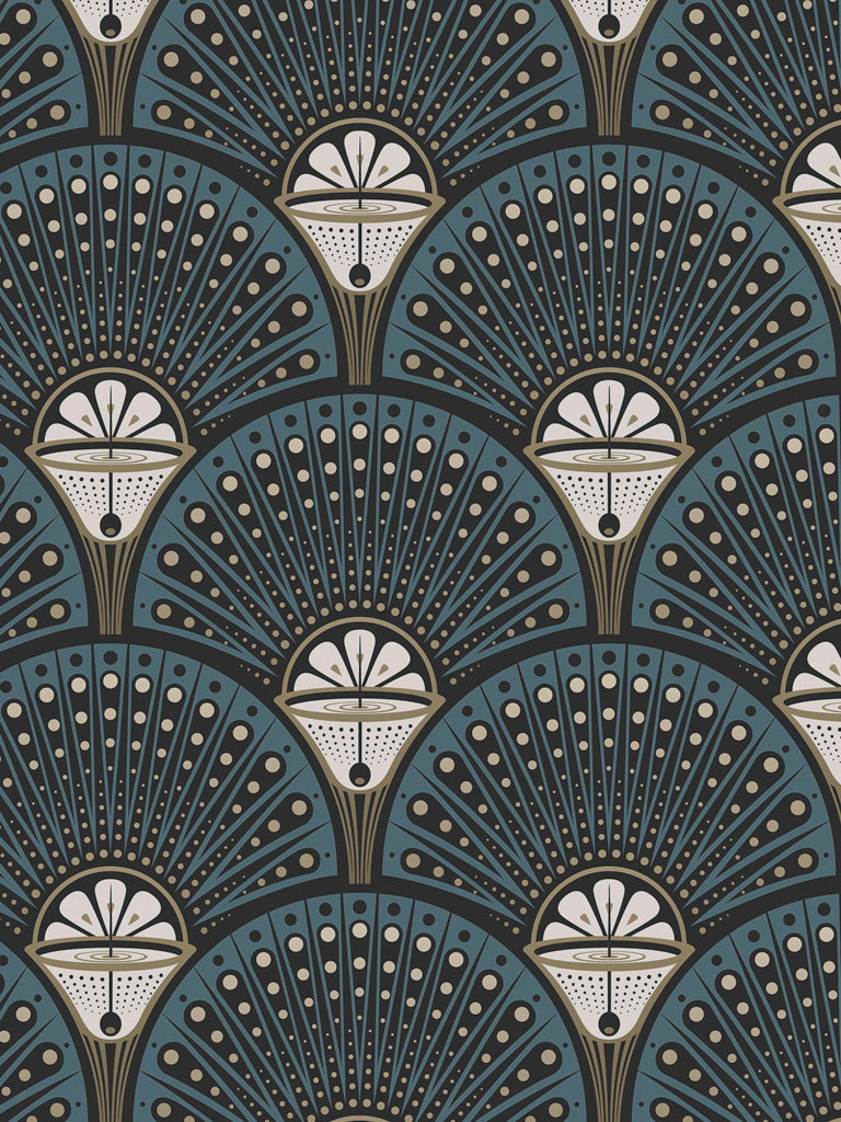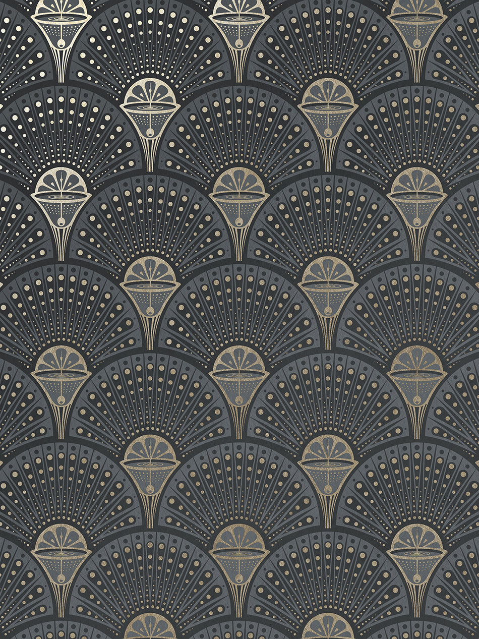 An Art Deco inspired design that brings Gatsby glamour to your home. Inspired by the Roaring Twenties and the decadent tastemakers of the jazz age, this bold graphic print brings Art Deco opulence to your interior with our Divine Savages twist on the traditional fan motif, featuring a hidden martini glass within the design.