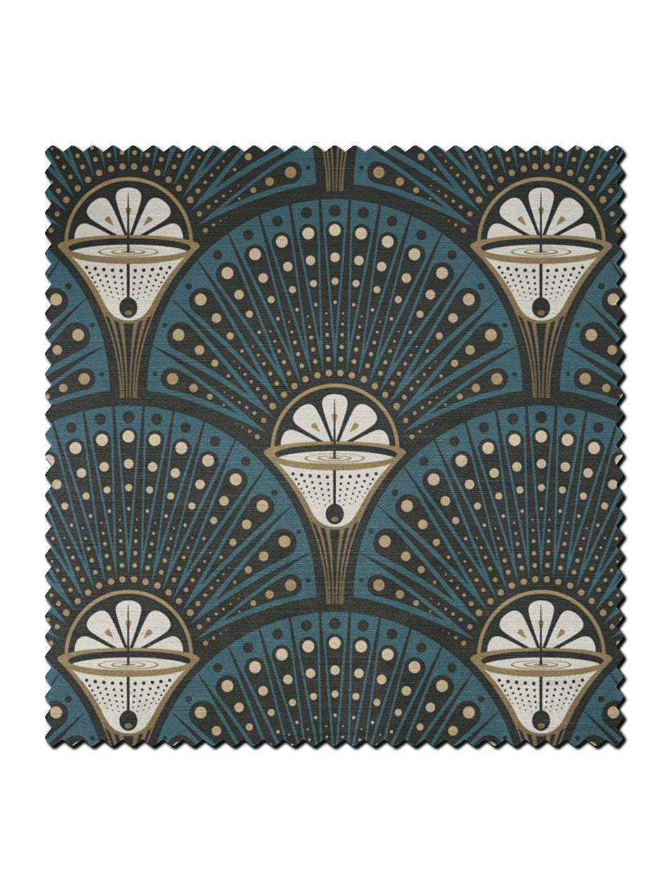 Inspired by the Roaring Twenties and the decadent tastemakers of the jazz age, this bold graphic print brings Art Deco opulence to your interior with our Divine Savages twist on the traditional fan motif, featuring a hidden martini glass within the print.