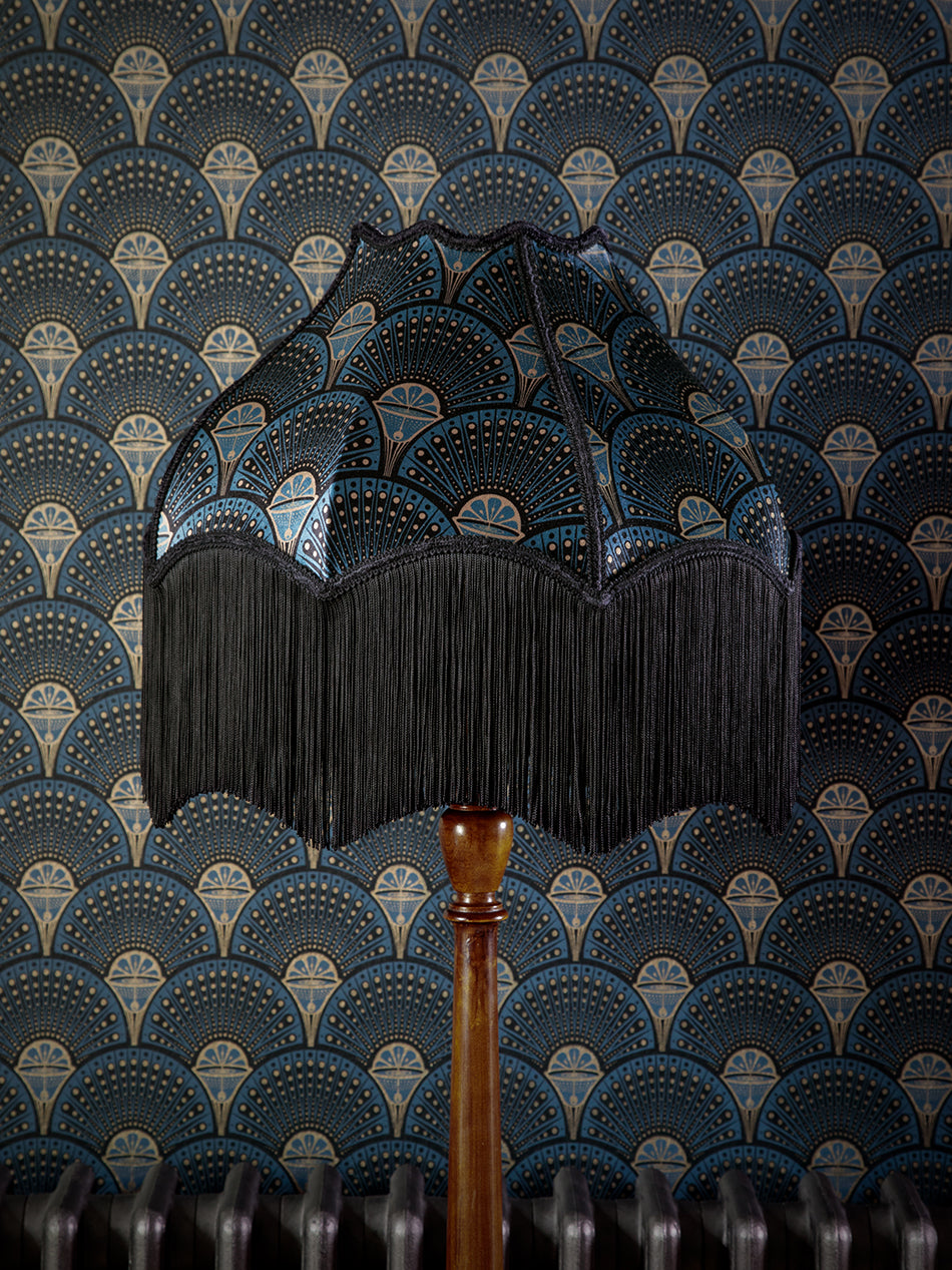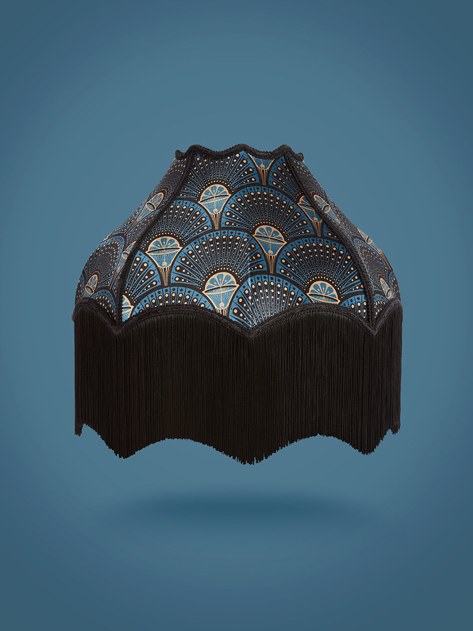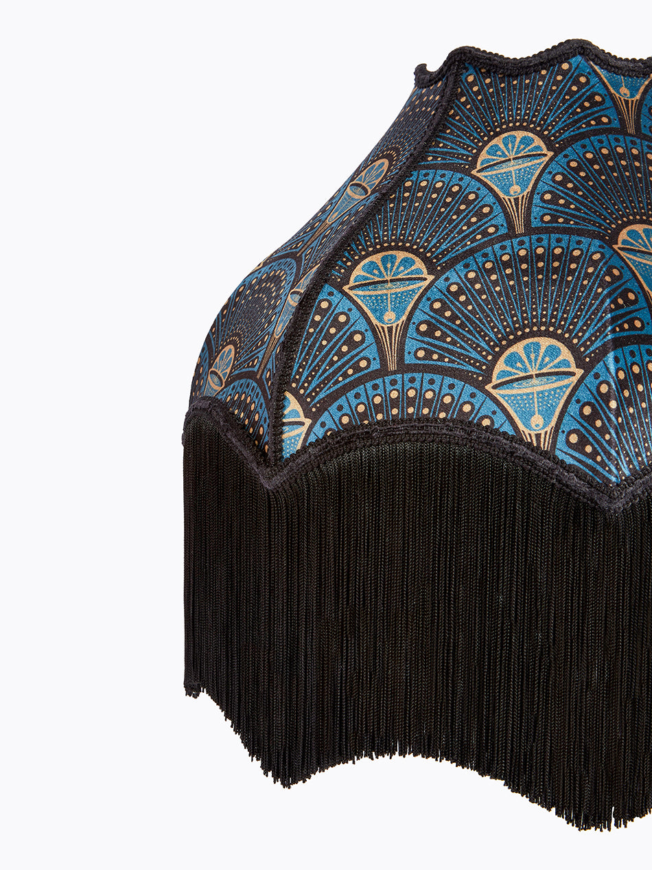 Inspired by the Roaring Twenties, our Divine Savages twist on the classic Art Deco fan motif shines brighter than ever in this sultry blue and gold colourway.