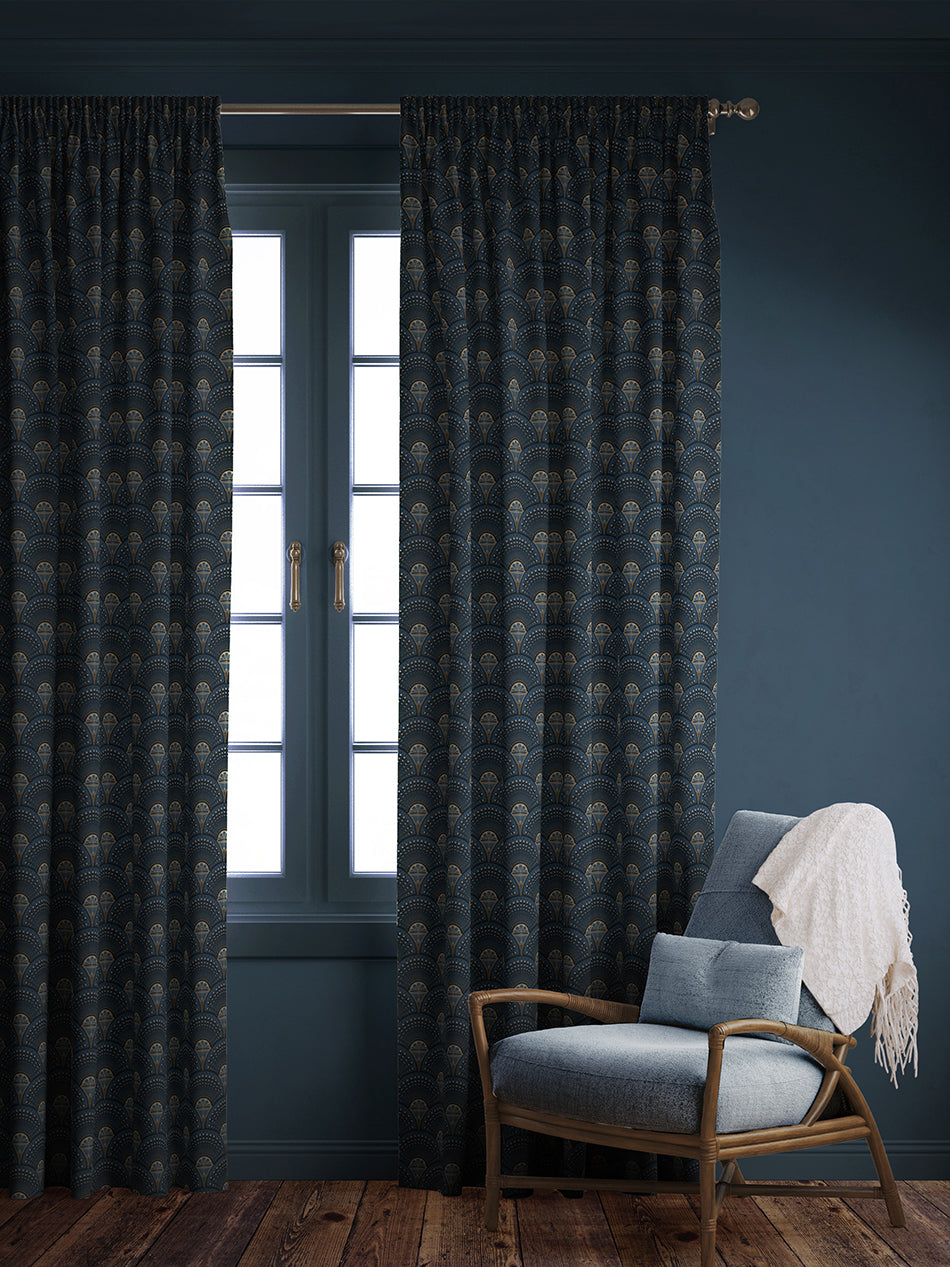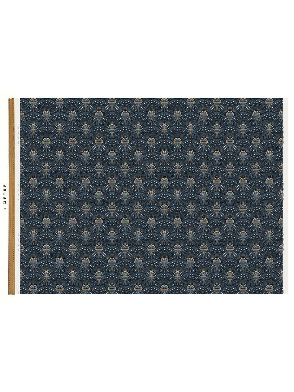 An Art Deco linen that brings Gatsby glamour to your home. With shades of deep blue and gold, we love using this linen in a bedroom or living room.