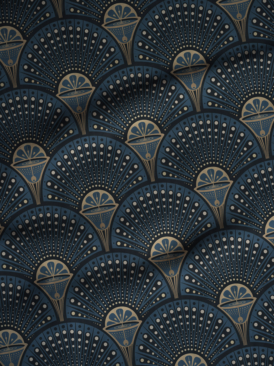 Inspired by the Roaring Twenties and the decadent tastemakers of the jazz age, this bold graphic print brings Art Deco opulence to your interior with our Divine Savages twist on the traditional fan motif, featuring a hidden martini glass within the print.