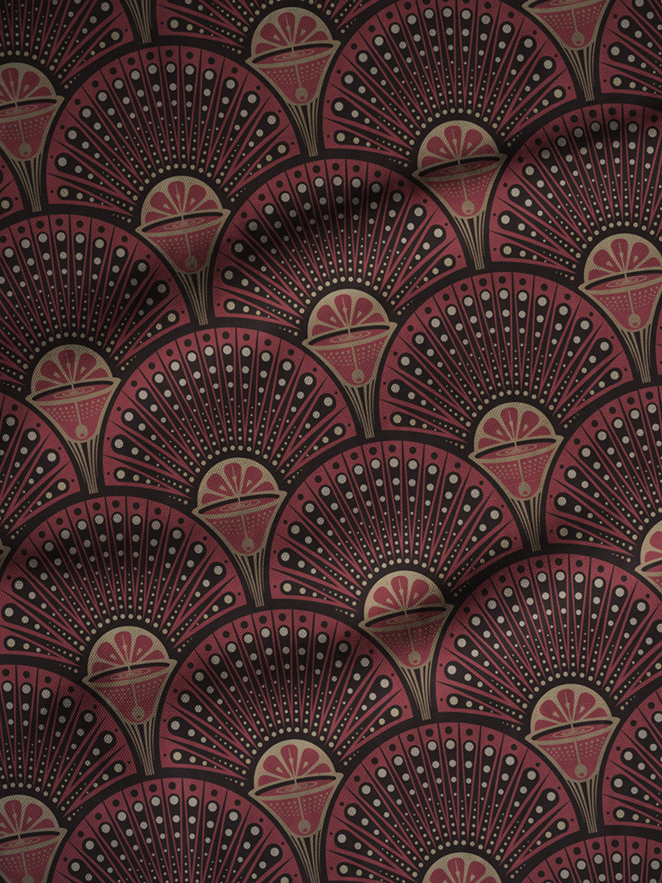 Inspired by the Roaring Twenties and the decadent tastemakers of the jazz age, this bold graphic print brings Art Deco opulence to your interior with our Divine Savages twist on the traditional fan motif, featuring a hidden martini glass within the print.