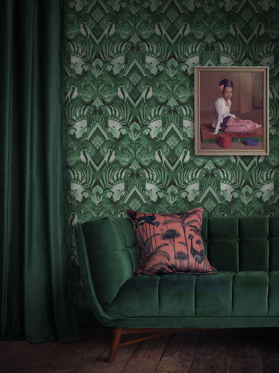 DIVINE PLUMAGE is inspired by the majestic birds of paradise from exotic, faraway lands. Our vibrant graphic print brings a sultry decadence to your interior with a fabulous carnival of our favourite feathered friends who are sure to bring excitement and a burst of tropical colour to your home.