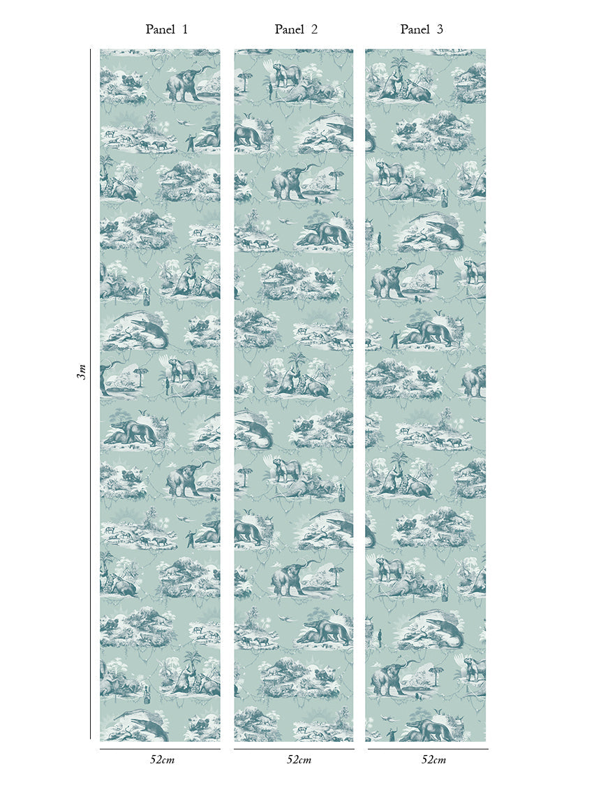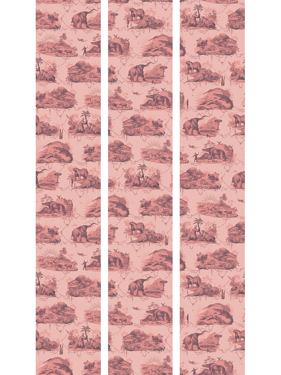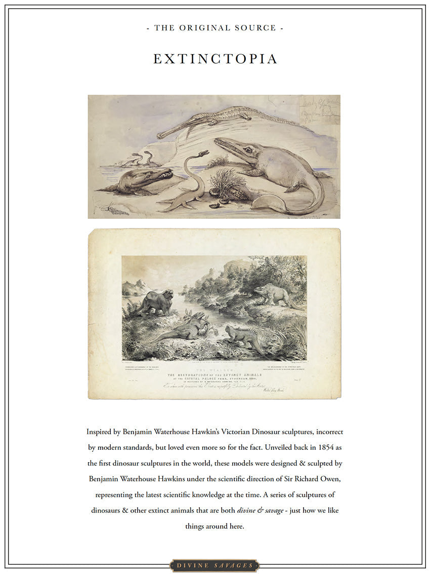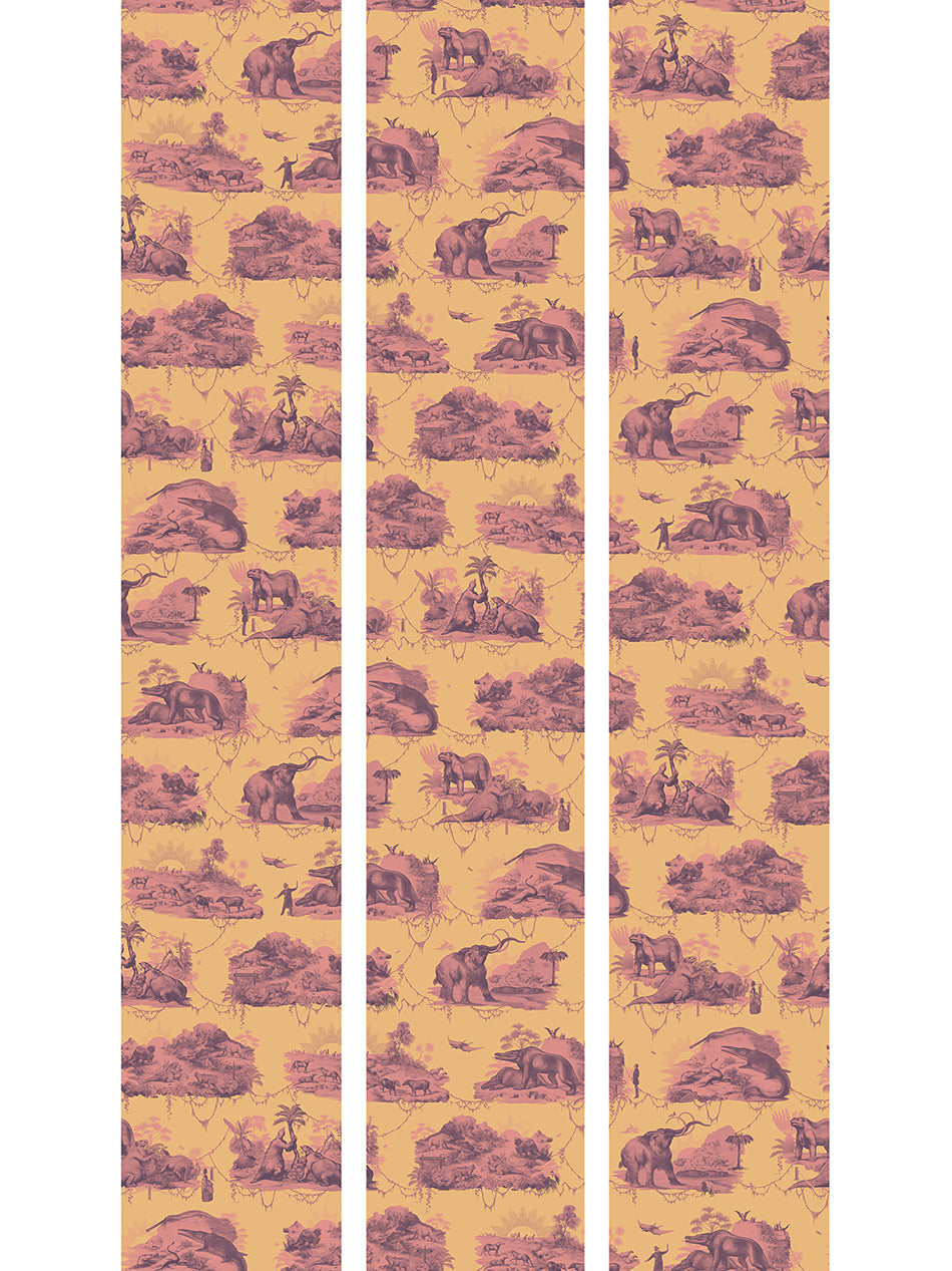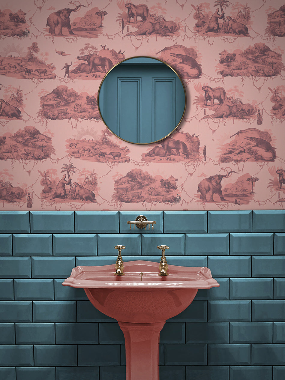 Taking inspiration from Benjamin Waterhouse Hawkin’s elaborate Victorian theme park at Crystal Palace, South-East London. Featuring a plethora of prehistoric beasts as they skulk in the bushes and frolic in the water, you’ll also notice the Victorians of the time as they wander through their Jurassic fantasy world. This detail-rich, largescale wallpaper will bring an artful ambience to any interior.