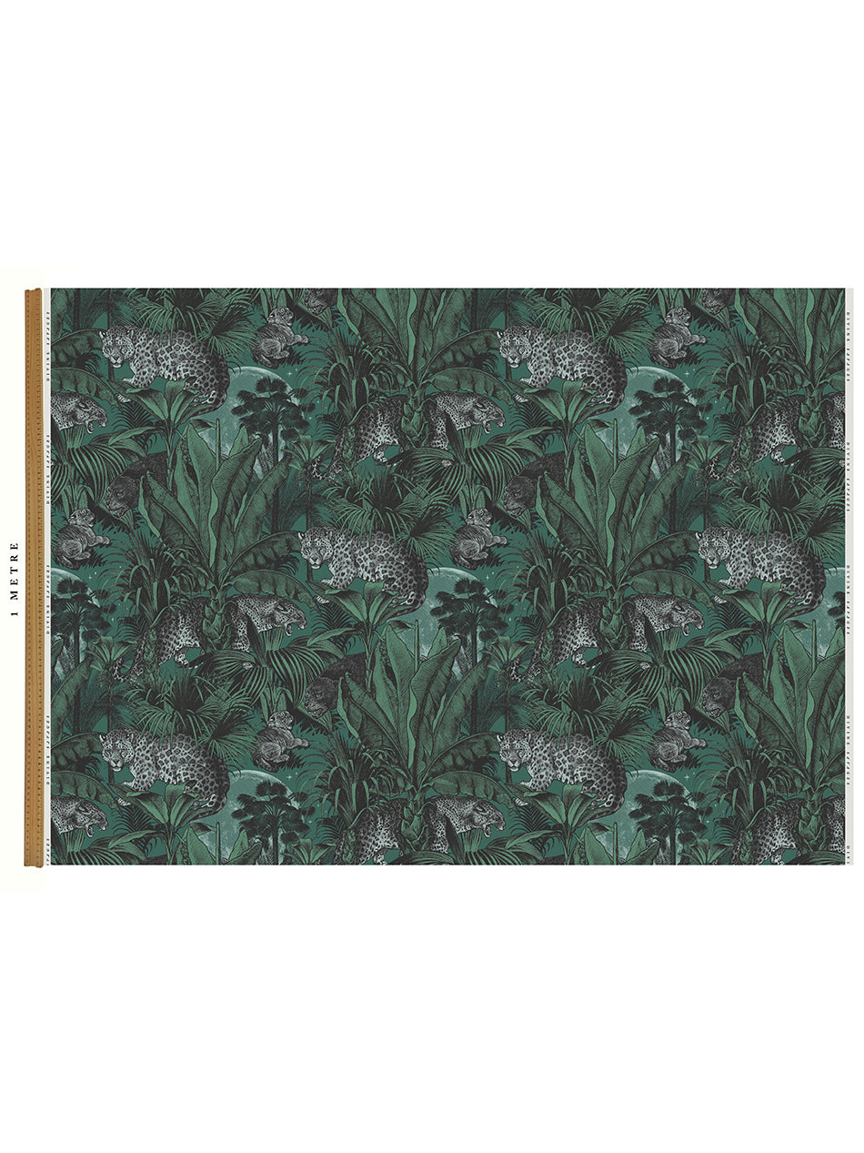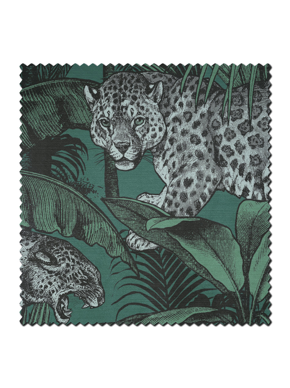 An iconic print featuring tropical palms, jungle foliage and big cats. Our Jungle Faunacation velvet combines a beautiful colour palette of rich and luscious greens for a fabulous finish.