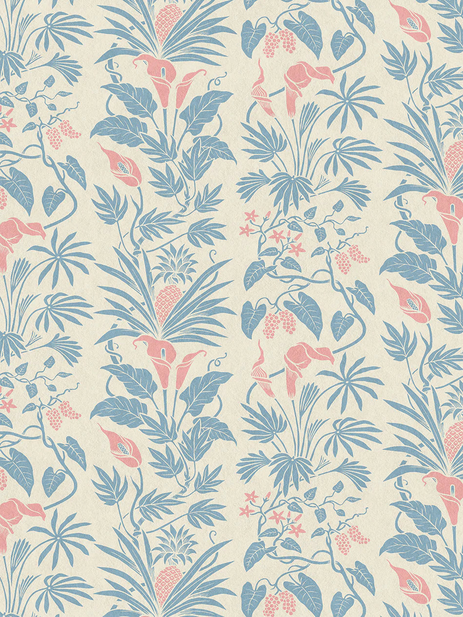 A beautiful botanic wallpaper with trailing foliage that brings nature into the heart of your home. We love using this pattern as a bedroom or bathroom wallpaper that brings the outside in. Discover Ecru Chintz, a timeless blend of delicate blue with soft rose details and a warm white background.