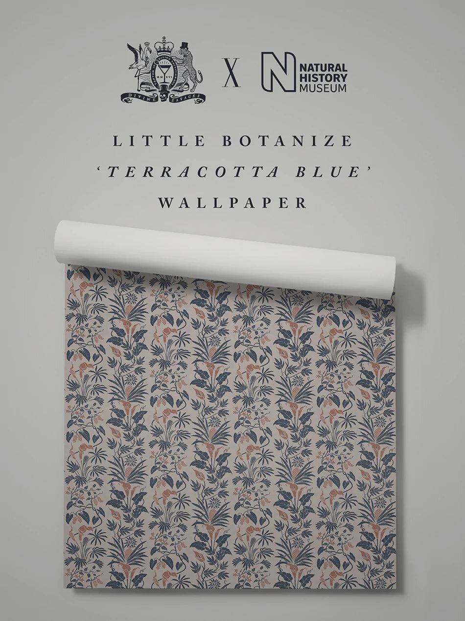 Inspired by the iconic Hintze Hall at London’s Natural History Museum whose vaulted ceiling is adorned with illustrated panels showing plants from across the world. We’ve played with scale for our Little Botanize print with a dainty pattern that brings a delicate, timeless artistry to your walls.