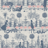 Portobello Parade wallpaper is available in five distinctive colours, themselves drawing inspiration from the city of London. DiscoverBlue Blush Haze with a neutral cream background with details in blush pinks and soft blues.