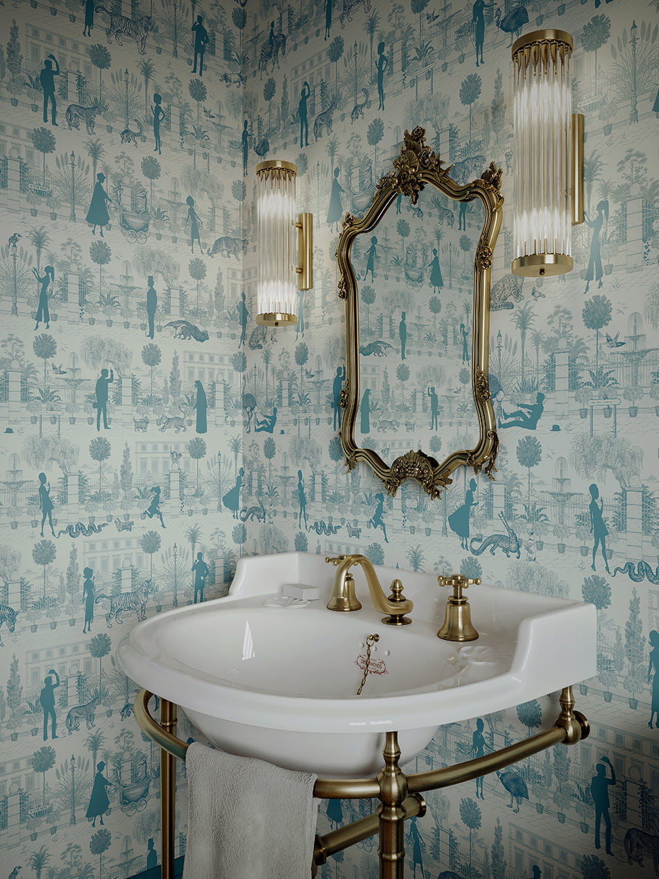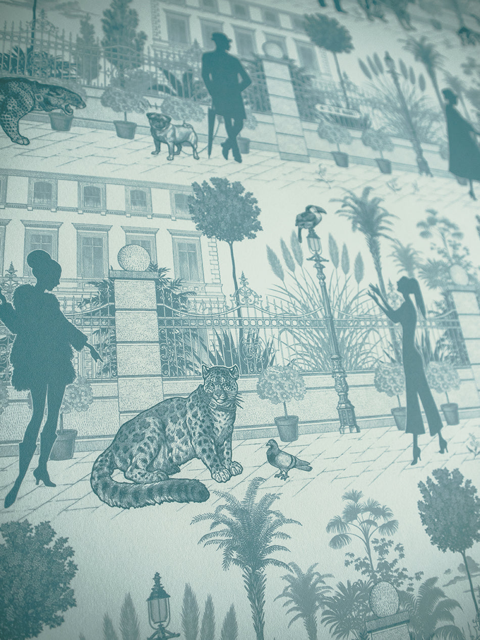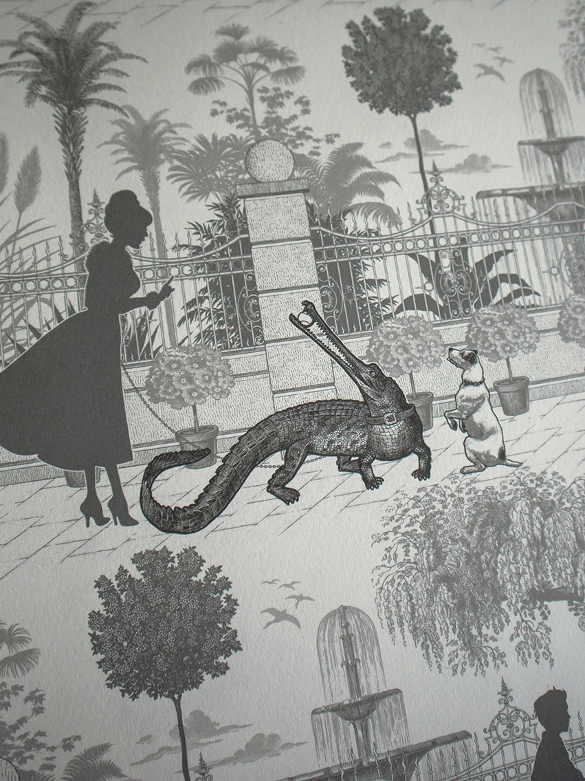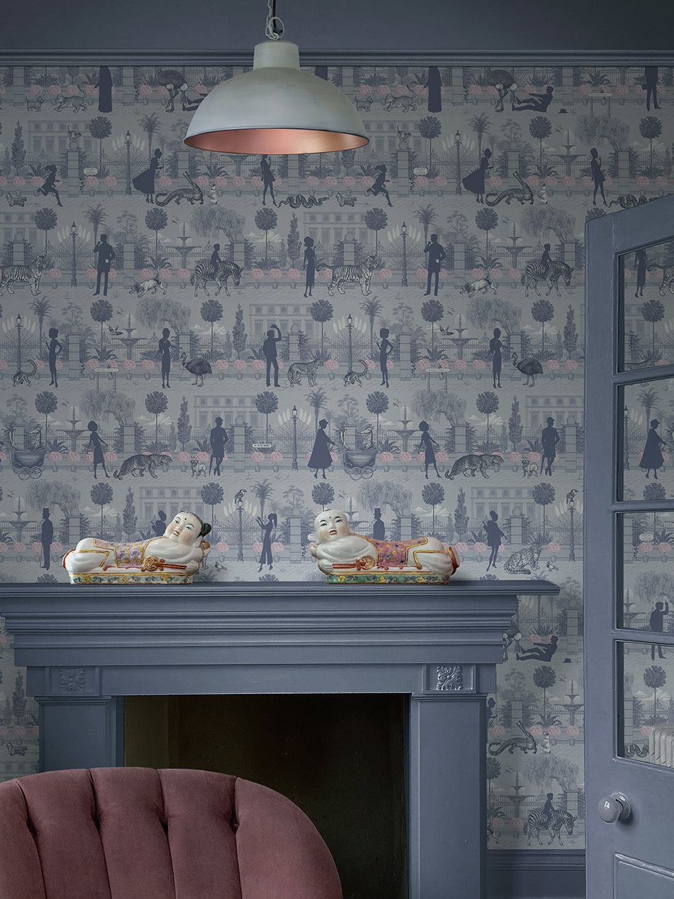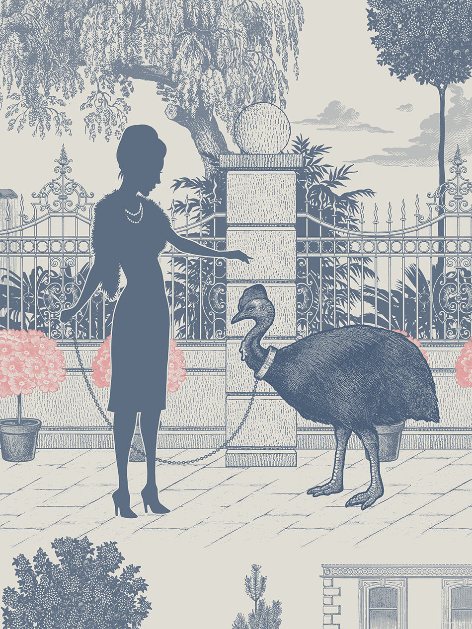 Inspired by London’s most unusual pets, this detail-rich wallpaper revisits a bonkers, bygone era where you could encounter an array of exotic animals not just at the zoo, but on the streets!