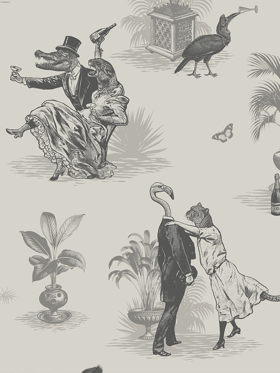 We're taking the lead from the party animals in our brand new Toile inspired wallpaper design - Safari Soirée. Featuring a mischievous cast of divine savages this elegant yet playful design will bring character to any room.