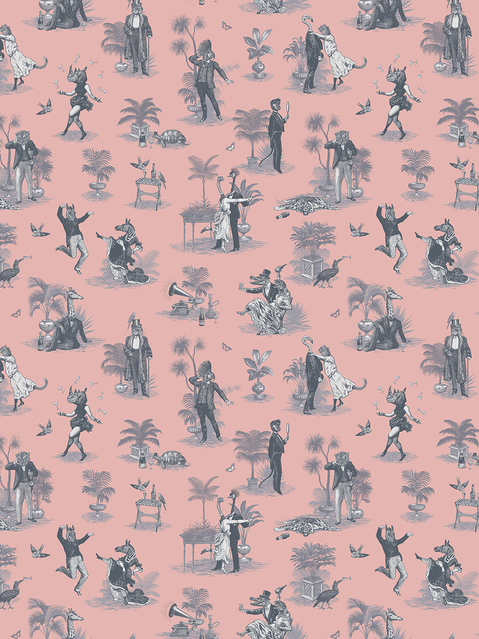 We’re taking the lead from the party animals in our Toile inspired wallpaper design - Safari Soirée. Featuring a mischievous cast of divine savages this elegant yet playful design will bring character to any room.
