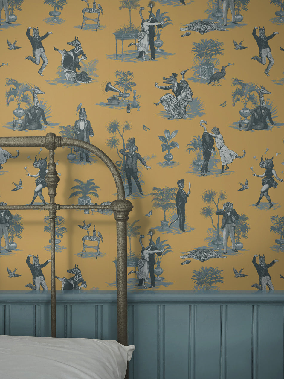 We're taking the lead from the party animals in our Toile inspired wallpaper design - Safari Soirée. Featuring a mischievous cast of divine savages this elegant yet playful design will bring character to any room.