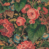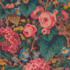 A beautiful wallpaper with a dark Burgundy background and accents of deep green, pink and blue. We love using this as a living room or dining room wallpaper.
